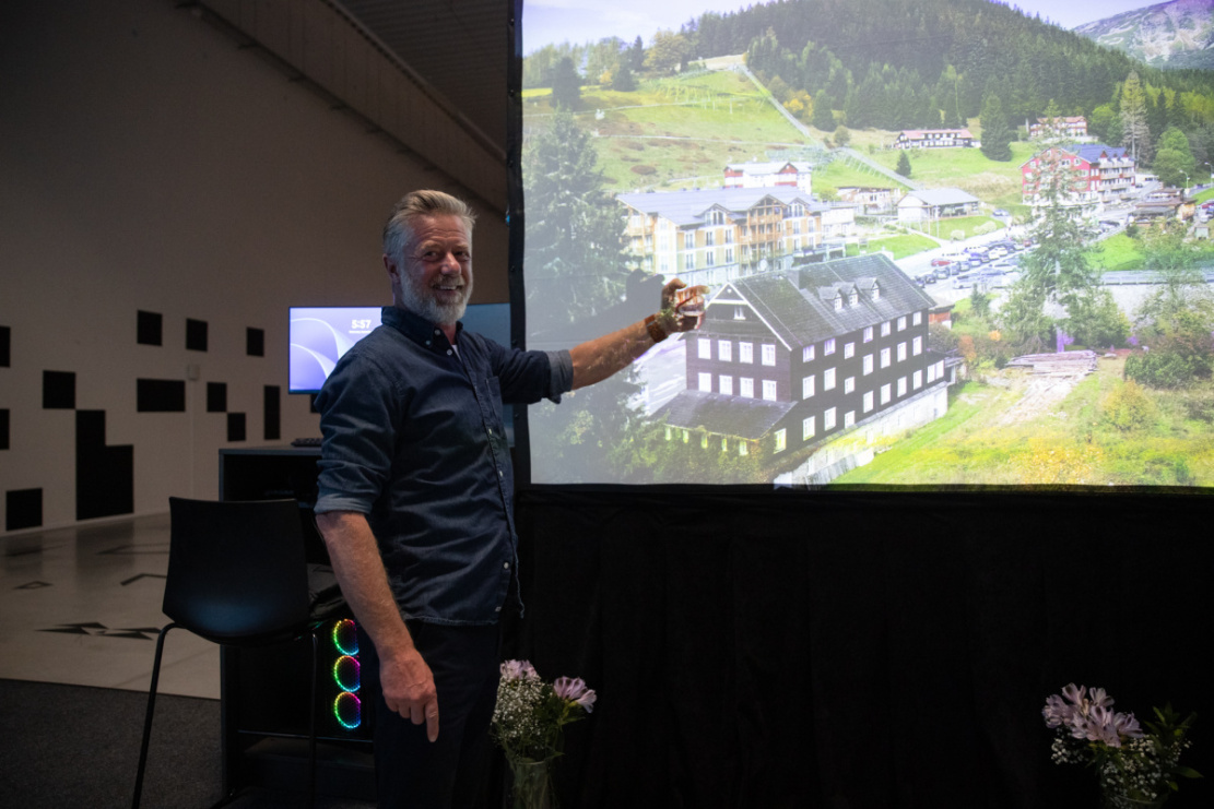 Brýle pro virtuální prohlídku si nasadil i Jiří Langmajer, který po skončení prohlídky neskrýval své nadšení. „Je to skvělý projekt a těším se, až bude v Peci pod Sněžkou doopravdy stát“,prohlásil a dodal: „Ovšem i ta prezentace projektu ve virtuální realitě je úžasná. Vše vypadá tak věrně, že jsem si chtěl dokonce v průběhu prohlídky na ten virtuální gauč i sednout“, smál se a pokračuje: “V Peci trávím svůj volný čas již mnoho let a také tu pořádám „Na skialpy s Langošem“. S oblibou se otužuji a po sauně se chodím zchladit do přehrady. Až se dostaví Svatá Barbora s obrovským wellness, bude možné se také tam po saunování ochladit rovnou v potoce.“