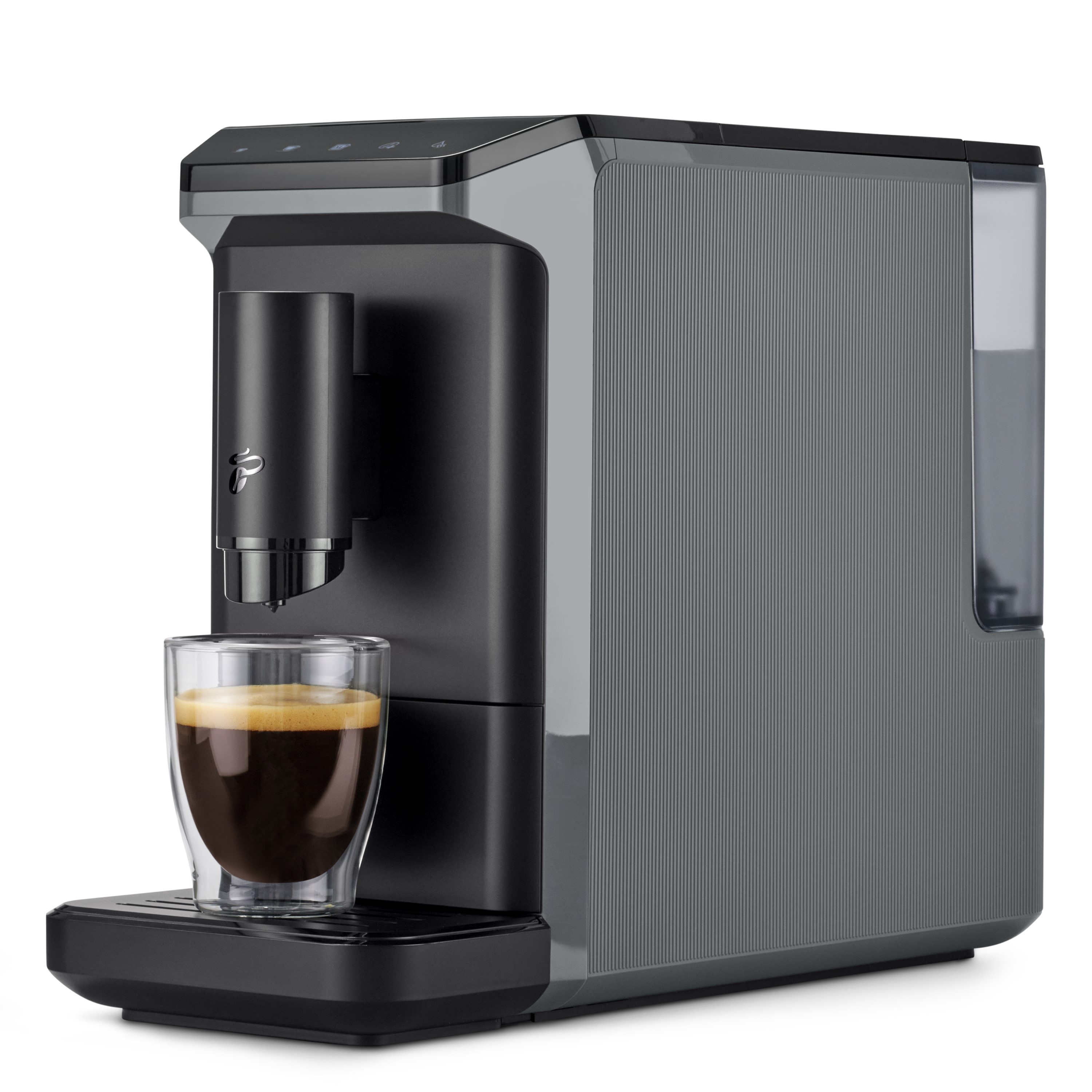 Esperto Mini je nejmenší plnoautomatický kávovar od Tchibo. Se šířkou pouhých 16 cm se snadno vejde i do opravdu malé kuchyňky nebo třeba do karavanu. Přestože má kompaktní rozměry, nabízí plnohodnotný kávový zážitek z espressa i caffè crema – s chutí jako z velkého kávovaru.