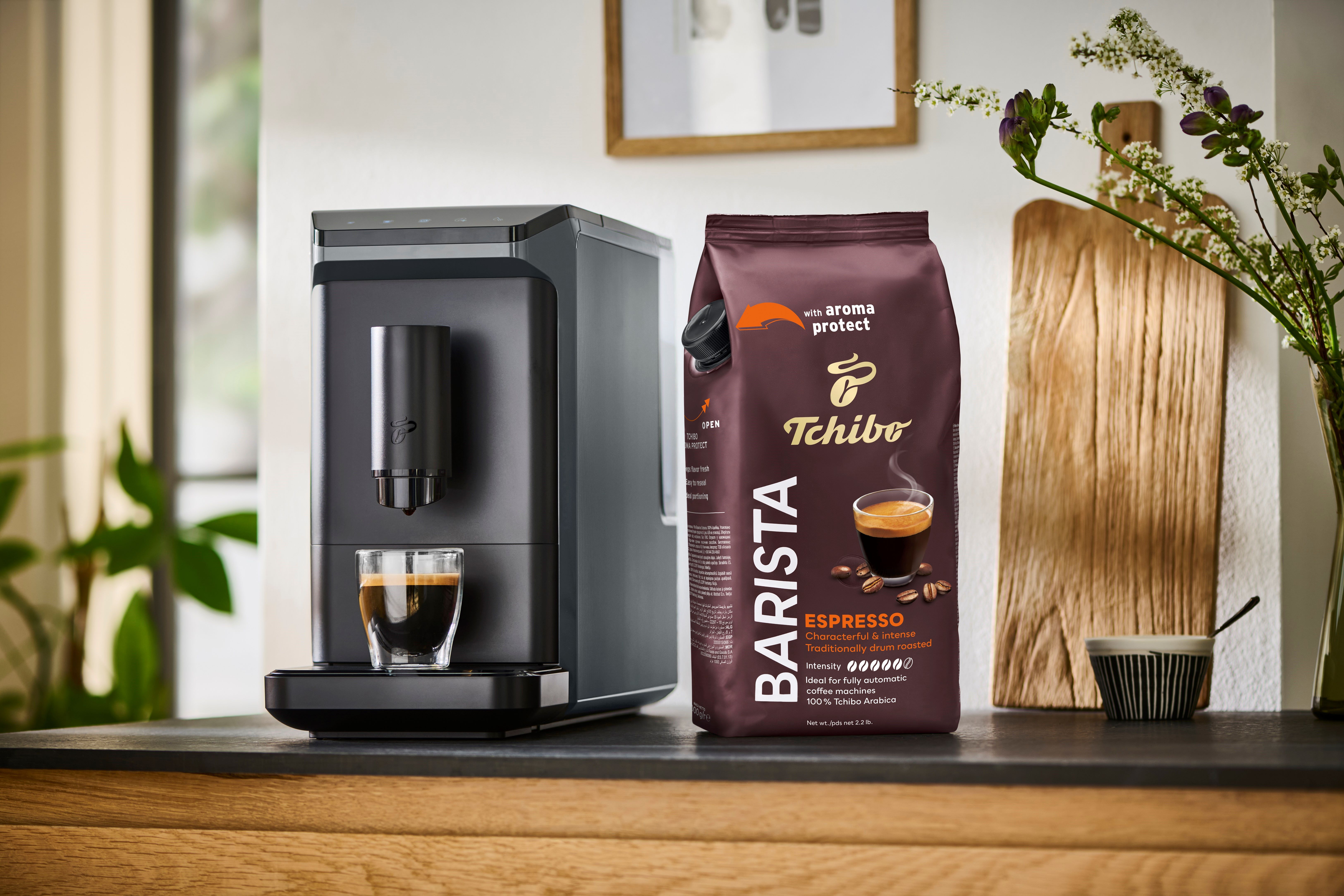 Esperto Mini je dostupný ve dvou elegantních barvách – černé a šedé. Novinku nabízejí obchody Tchibo i e-shop na Tchibo.cz. Držitelé TchiboCard získají k nákupu kávovaru Esperto mini 1 kg kávy Tchibo Barista.